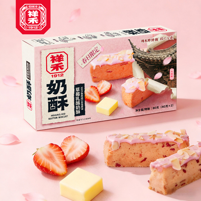祥禾饽饽铺奶酥草莓乳酪曲奇饼干奶皮酥天津特产糕点零食下午茶9.9元天猫14.9元