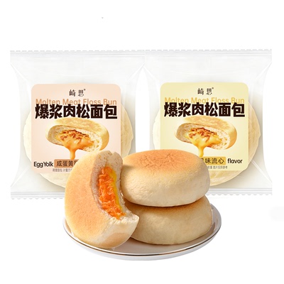 崎思爆浆肉松面包绵密芝士流心咸蛋黄夹心软包早餐下午茶整箱营养34.8元天猫43.8元
