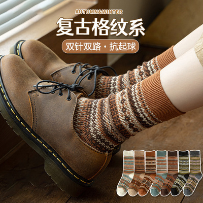 少女袜子复古中筒袜春秋季提花透气长筒袜女士日系条纹潮流堆堆袜8.9元淘宝19.9元