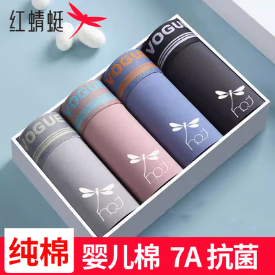 红蜻蜓7A级抗菌男士内裤纯棉平角短裤桑蚕丝网孔底裆大码四角裤头69.9元天猫79.9元