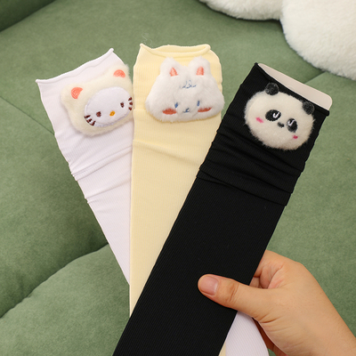 堆堆袜女冰冰袜春夏秋立体卡通熊猫纯色卷边长筒袜天鹅绒中筒袜子14.9元淘宝19.9元