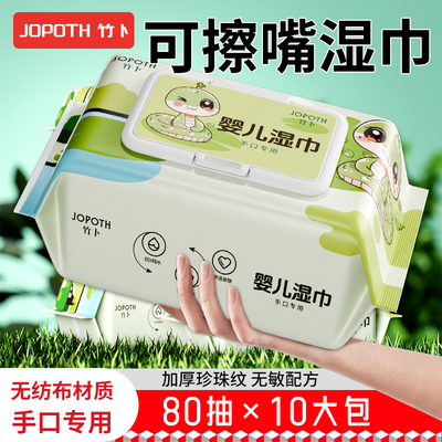 80抽婴幼儿手口湿巾无刺激清洁专用家用带盖袋装湿纸巾手口专用1.2元天猫3.2元