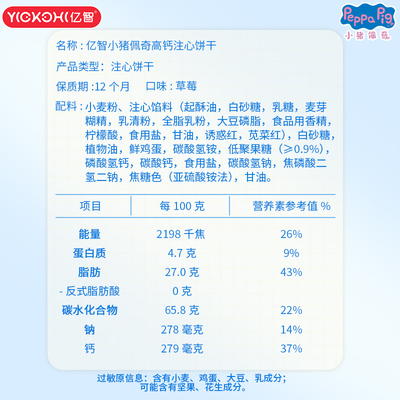 亿智草莓味注心儿童饼干160g*2盒34.9元天猫39.9元