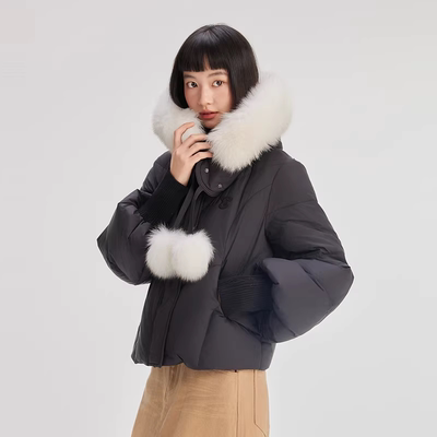 狐狸毛领可拆卸艾莱依甜美羽绒服839元天猫899元