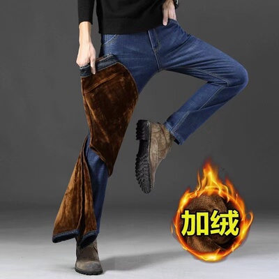 秋冬季男士加绒加厚弹力牛仔裤男宽松直筒保暖厚款过冬防寒长裤子89元淘宝189元