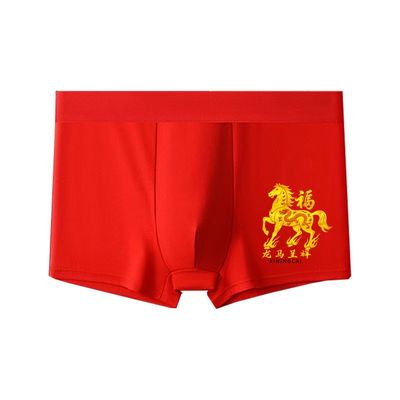 茜宁彩本命年男士内裤男生平角裤纯棉大红色结婚礼物属马四角短裤9.9元天猫17.9元