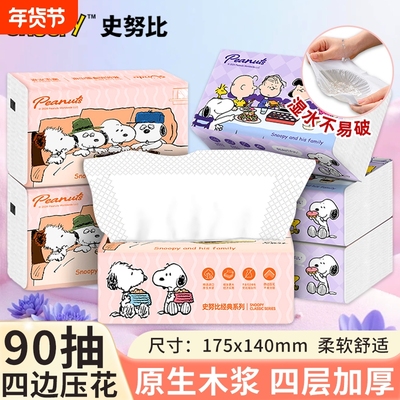 史努比抽纸90抽卫生纸加厚面巾纸家庭纸巾实惠装整箱家用大尺寸5.9元天猫12.9元