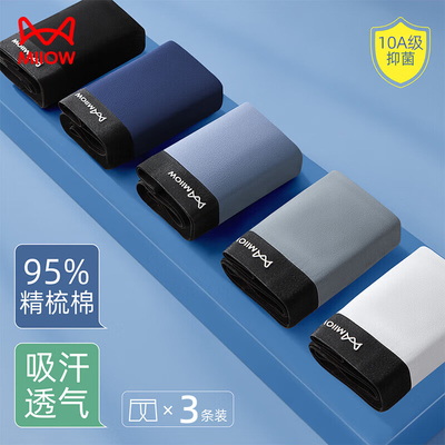 猫人男士纯棉内裤抗菌四角裤裤头亲肤透气舒适柔软细腻27.9元天猫43.9元