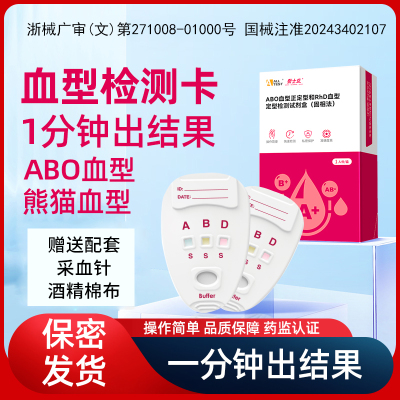 血型检测卡居家自测ABO血型检测试剂盒自测试纸熊猫血RhD检测测试7.9元天猫12.9元