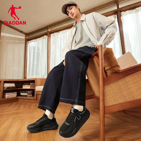 乔丹革面防水黑色休闲鞋男