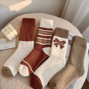 厚袜子女秋冬咖色加厚全毛巾中筒袜保暖加绒学院风纯色毛圈长筒袜