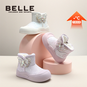 百丽童鞋女童公主雪地靴25秋冬新加绒棉靴女孩保暖儿童棉鞋2-6岁