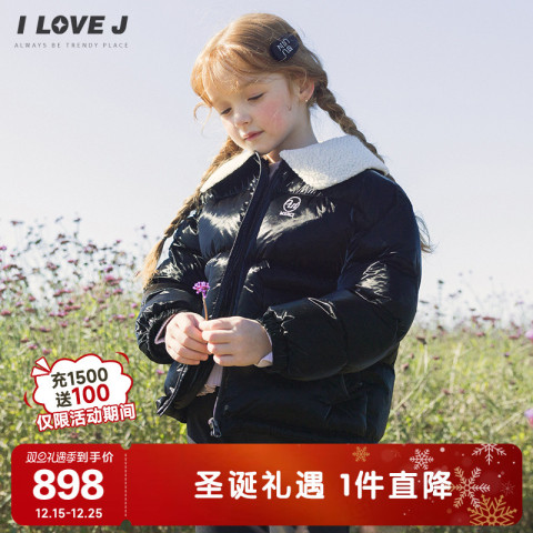 ILOVEJ女童翻毛领黑丝绒夹克外套