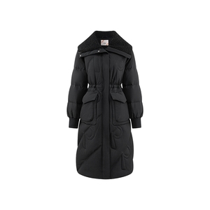 艾莱依时尚仿羊羔毛领长款羽绒服