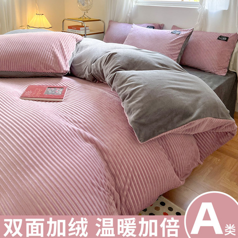 冬季牛奶绒四件套a类珊瑚绒床被罩法兰绒被套加绒加厚床上三件套