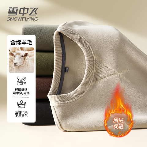 雪中飞男士新款绵羊毛奥粒绒卫衣