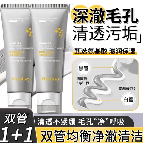 【2支】CS韩纪氨基酸白泥洁净双管洗面奶旗舰店正品