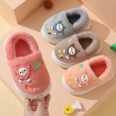 儿童棉鞋男童女童家居防滑包跟小孩宝宝蛋仔卡通棉拖鞋大童毛拖鞋