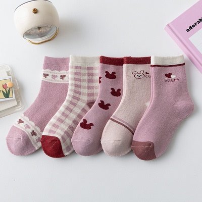 女童袜子冬款毛圈袜儿童秋冬季加绒学生中筒袜女孩宝宝可爱毛巾袜
