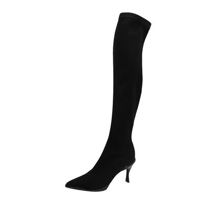 吴大叔弹力显瘦过膝绒面尖头长靴349元天猫409元